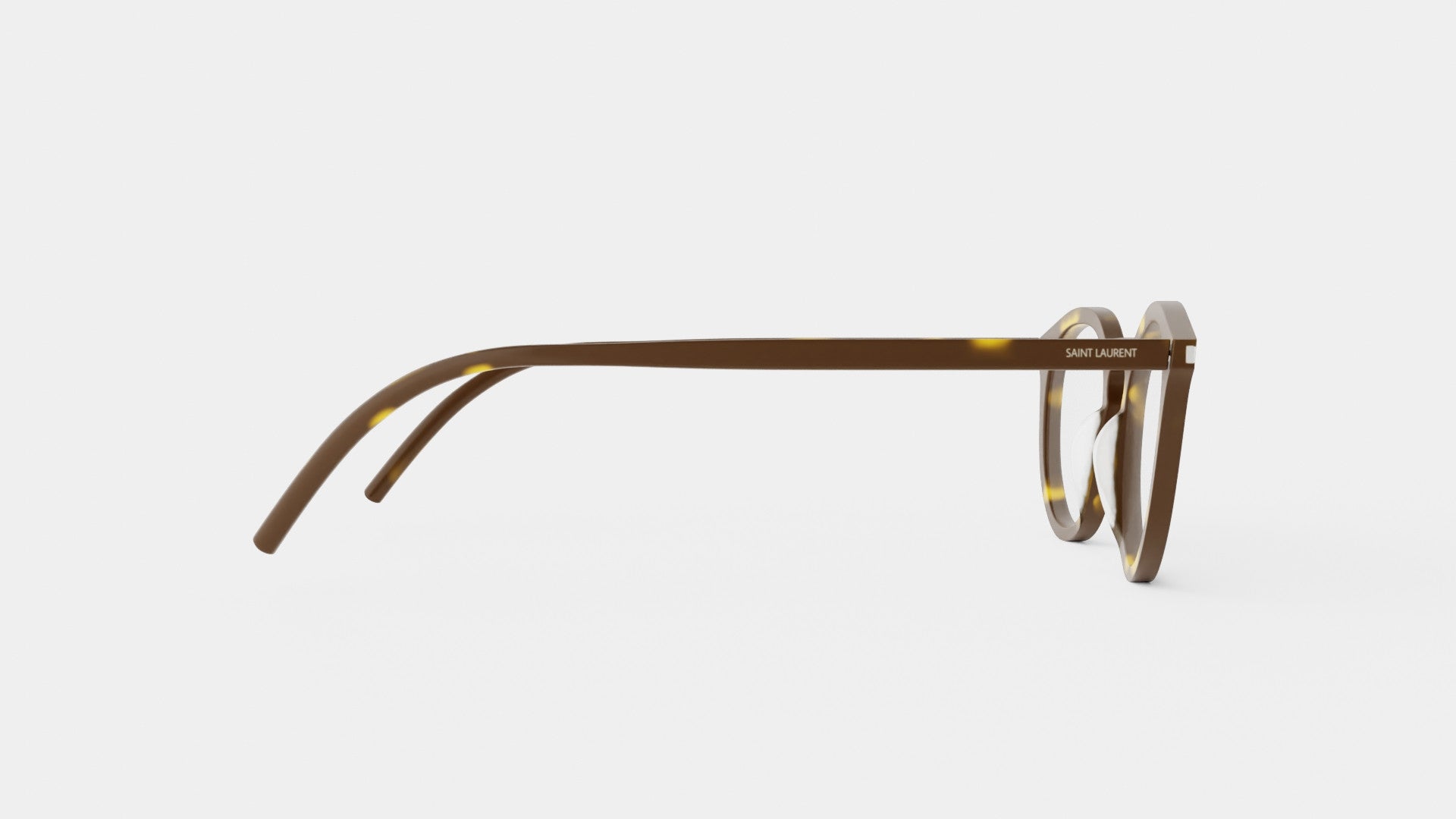 Iconic frame by Saint Laurent, in acetate that recalls old style lines with the inevitable metal decoration on the front and logo on the temple.