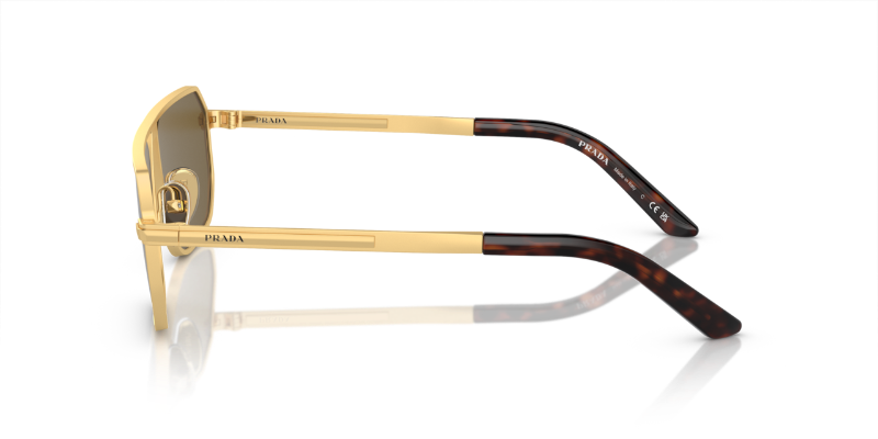Occhiale da sole Prada PR A53S in metallo rettangolare pilot nero con logo argento sull'asta .