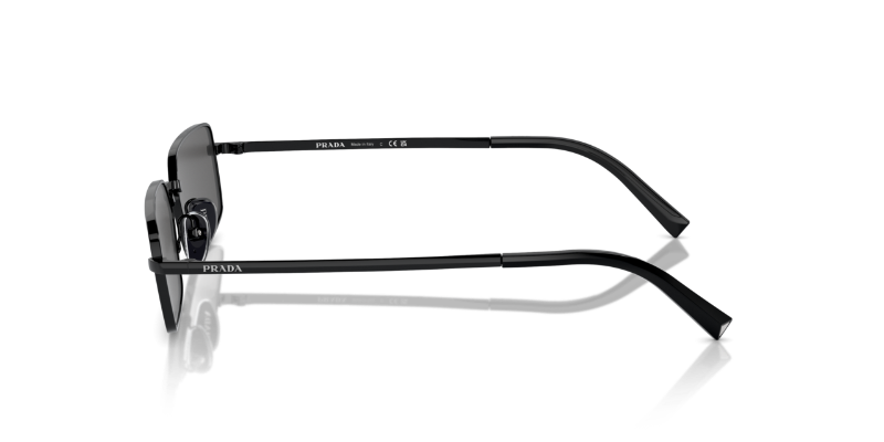 Occhiale da sole Prada PR A60S in metallo rettangolare nero con logo argento sull'asta .