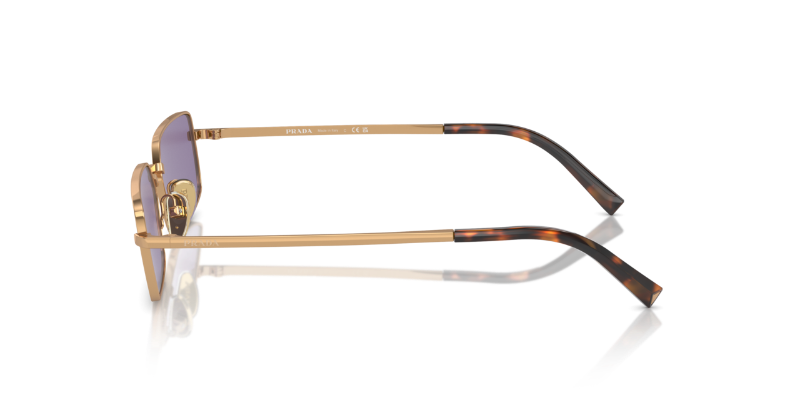 Occhiale da sole Prada PR A60S in metallo rettangolare nero con logo argento sull'asta .